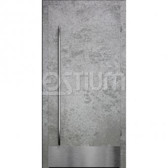 Распашная глухая дверь Loft 2 в стиле лофт — это воплощение современного дизайна и прочности. Особенностью этой двери является её индустриальный стиль, который подчеркивается отбойниками и большой ручкой-скобой из нержавеющей стали. Эти элементы не только добавляют визуального интереса, но и повышают функциональность, обеспечивая долговечность и устойчивость к внешним воздействиям.