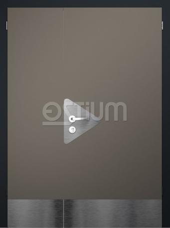 Присутствие остекления создает эффект простора и визуальной легкости, пропуская достаточно естественного света, что особенно ценно в помещениях с низкой освещенностью. Отбойник из нержавеющей стали предохраняет дверь от повреждений, обеспечивая ее эстетичный вид в течение длительного времени.