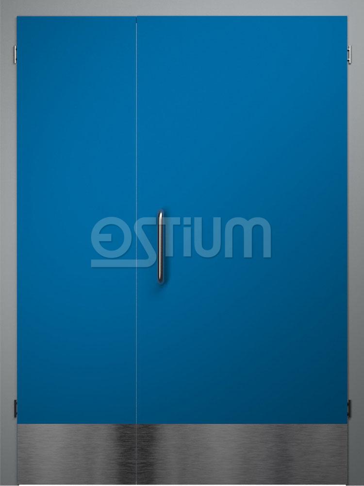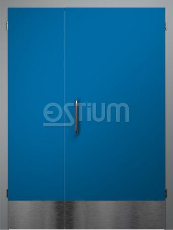 Присутствие остекления создает эффект простора и визуальной легкости, пропуская достаточно естественного света, что особенно ценно в помещениях с низкой освещенностью. Отбойник из нержавеющей стали предохраняет дверь от повреждений, обеспечивая ее эстетичный вид в течение длительного времени.