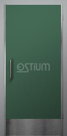 Одностворчатая распашная дверь CPL. Оснащена ручкой-скобой, антивандальными торцами, отбойником из нержавеющей стали.