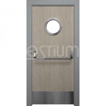 Покрытие из CPL-пластика Pass 5 придает двери долговечность и стойкость к механическим повреждениям. Более 50 цветовых вариантов отделки позволяют легко подобрать дверь под любой интерьер, будь то офис, торговый центр или другое общественное помещение. Дверь оснащена ручкой антипаника, которая гарантирует простое и быстрое открытие в экстренных ситуациях.