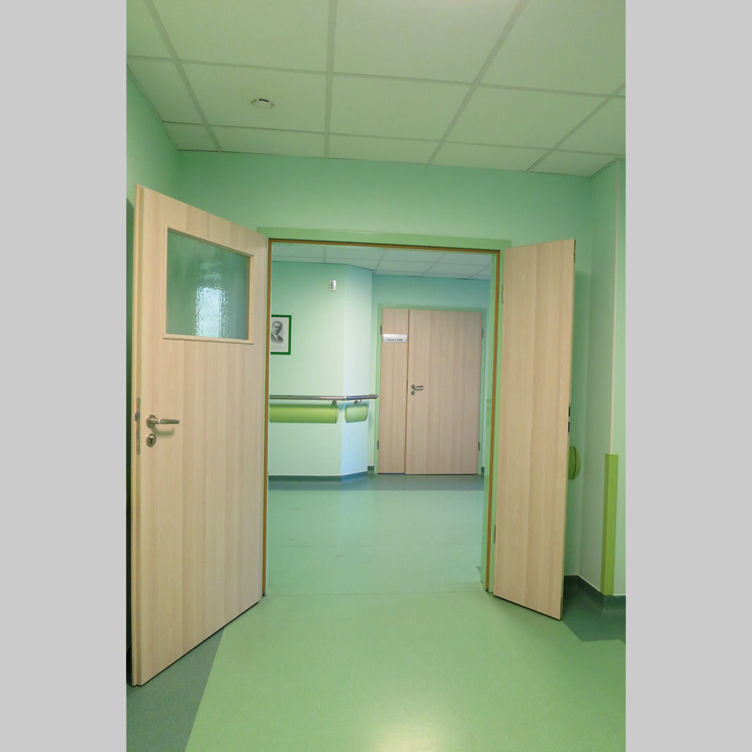 Медицинские двери производятся согласно определенным, строго контролируемым, стандартам и имеют специальный сертификат на производство дверей для медицинских учреждений. Наши двери отвечают требованиям безопасности и могут устанавливаться в различные помещения медицинского учреждения, в частности: в кабинеты врачей, палаты, операционные, процедурные кабинеты, санузлы и душевые, коридоры, лестничные марши, лифтовые холлы и помещения технического назначения.
